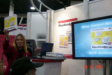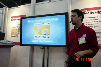 Para os profissionais e estudantes que utilizam textos de jornais, livros, revistas , escaneando e convertendo automaticamente em arquivos Excel e Word, o sistema FineReaderOCR, versão 7.0, é fenomenal. O vendedor fez uma apresentação escaneando o Jornal USA Today nos placares dos jogos do futebol americano desta semana. Ele conseguiu mudar o placar e retornar ao formato do jornal, bem como conseguiu transformar o placar em arquivo Excel. Com esse sistema acabaram-se os problemas com as travas dos arquivos PDF, pois a capacidade do programa é super refinada, trabalhando com 177 línguas.