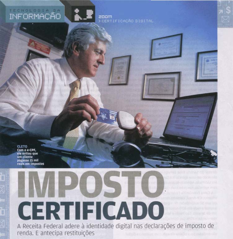 Imposto Certificado Entrevistas 28 de dezembro de 2005 Clique aqui para ler o PDF Leia também Sequestros em sistemas e ataques cibernéticos nas MPEs- como fazer para se prevenir 31 de outubro de 2016 Nota Fiscal Eletrônica 24 de maio de 2009 Certificação digital ganha novo fôlego no Brasil 31 de janeiro de 2014